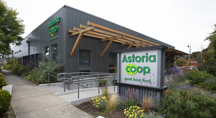 The Co+op has about 7,000 members, although everyone is welcome at the store located just east of downtown Astoria. In the light-filled, vibrantly decorated building, shoppers can browse a wide variety of healthy items, from organic fruit and vegetables fresh off the farm to humanely raised meat to products and deli food that meet the needs of vegan, vegetarian, gluten-free, and other special diets.