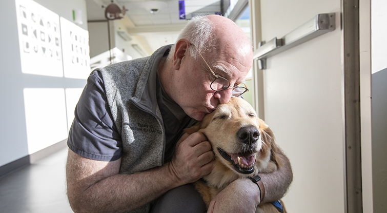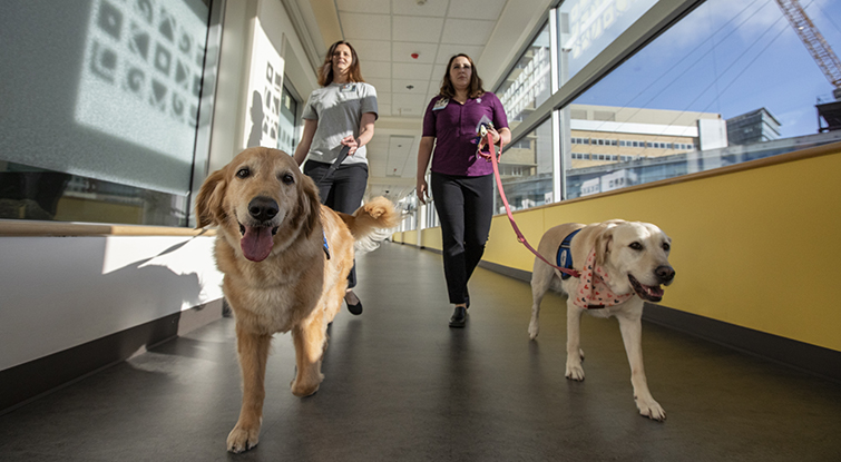 As Oregon’s only public academic medical center, OHSU is at the forefront of medical research and innovation. But a pair of golden retrievers at OHSU Doernbecher Children’s Hospital gives the organization a unique distinction in another area: animal-assisted therapy. It’s the only hospital in the Northwest with two hospital facility dogs on staff.