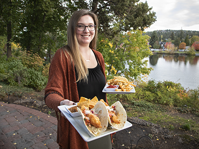 On the banks of the Rogue River stands a towering lodge, home to expansive decks, and a menu full of ingredients from local farms and ranches.