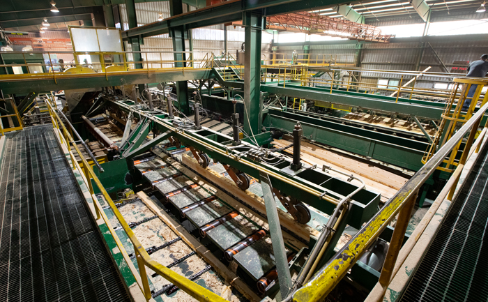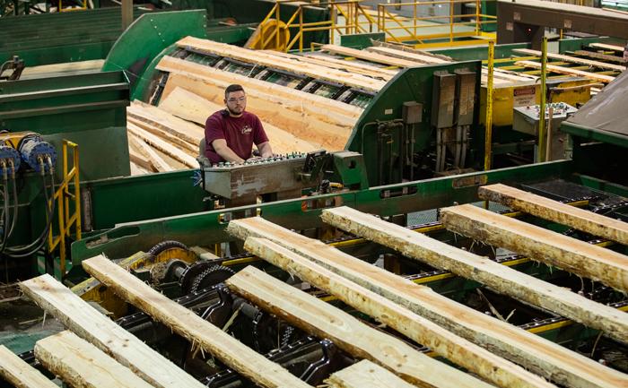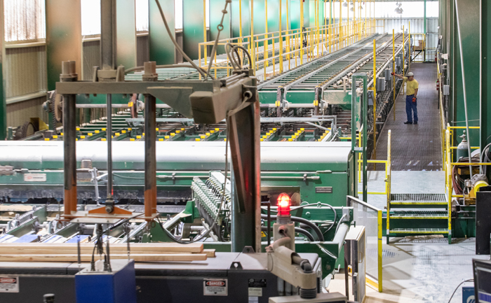 Lumber is carried through on conveyors, assessed by the computer, and cut into smaller pieces in a matter of seconds. South Coast touts it as one of the most efficient sawmills in the world.