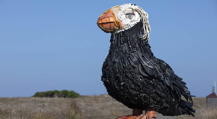 The unique sculptures start from plastic debris gathered by volunteers on coastal shores before being sorted by color, assembled into larger pieces by volunteers, and finished by sculpture builders. They’ve completed 85 sculptures and have more in the works.