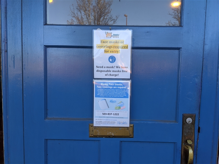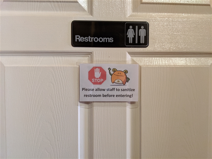 On the door, there are two ginormous signs that say, "Masks are required for entry. If you don't have one, call us." We made table [signs] with all our steps we take, like sanitizing menus, bathrooms, pens, tables, etc.